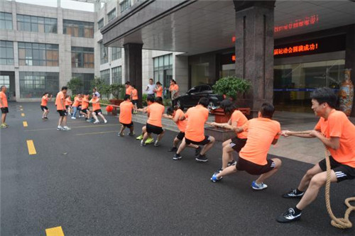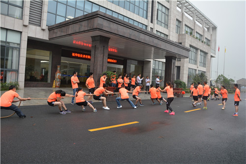 拔河比賽由市場部、生產部、技術和綜合管理聯隊三隊參加,各隊選出5男3女組成一組。這是場力量的較量,這是團隊的比拼,是一場最精彩激烈的比賽,沒有之一。隊員們腳如生根大樹牢牢釘在原地,手如鋼筋鐵鉗抓住麻繩,使出了洪荒之力,寸步不讓...經過十多分鐘的僵持,最終由生產部以微弱優勢獲得了拔河比賽的冠軍頭銜,這也充分驗證了一句話:“咱們工人有力量!”